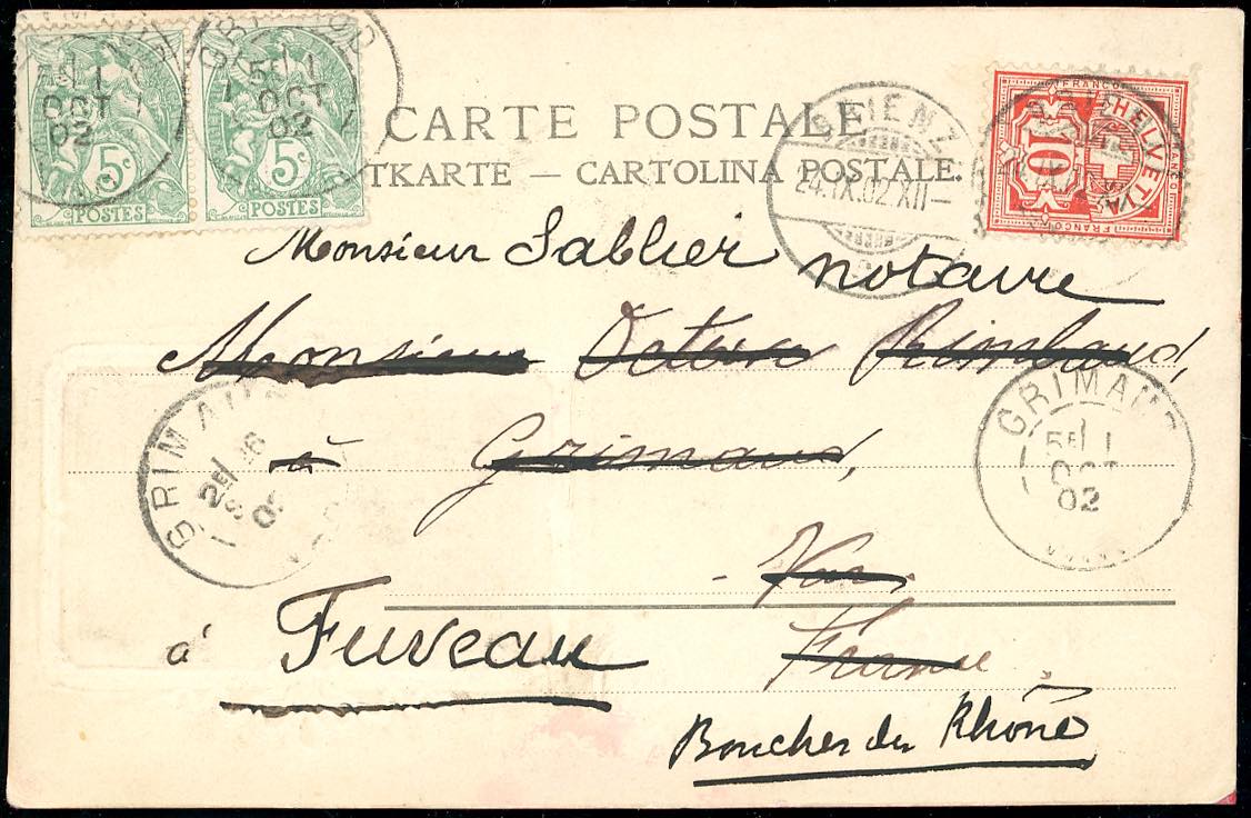 Lot 4347 - SVIZZERA/FRANCIA 1902 - Redirected with additional franking.