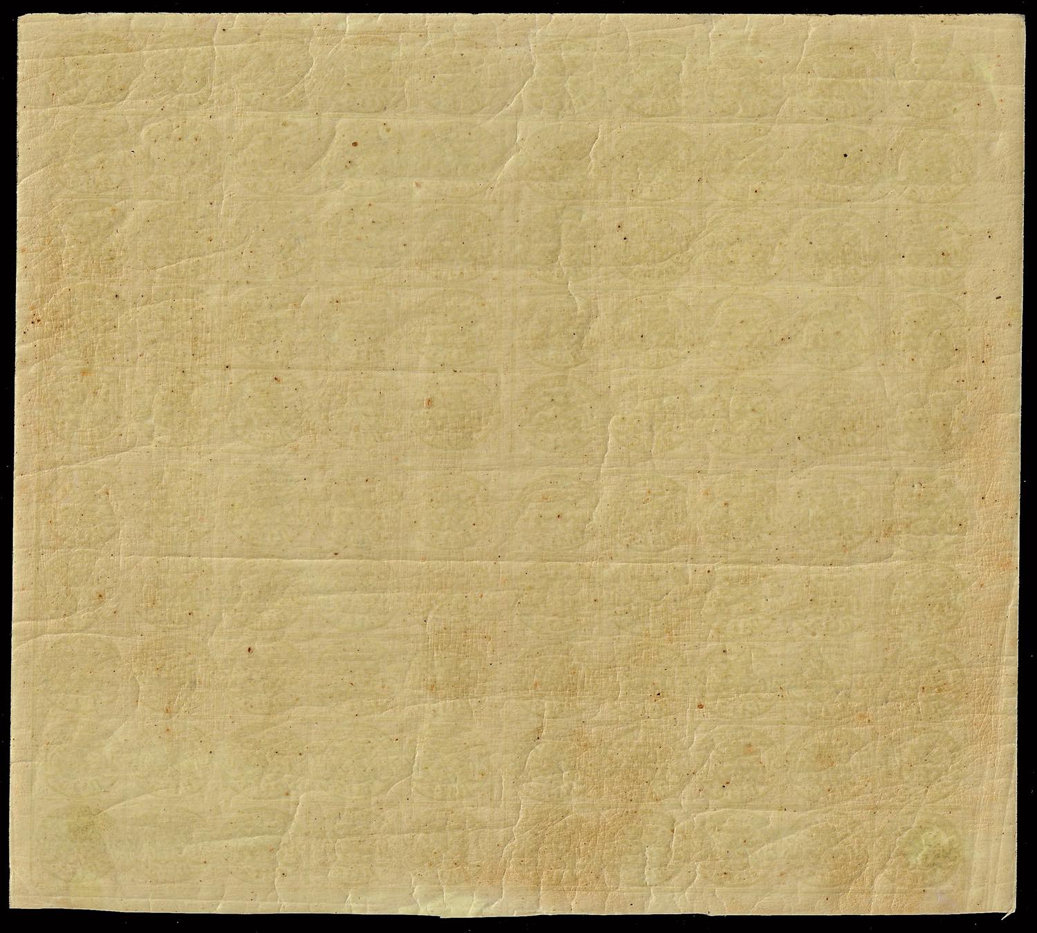 1863 - 3 baj giallo cromo (4A), foglio completo di 100 esemplari con interspazi di gruppo, nuovo, gomma originale integra, minima linguella solo su un esemplare del margine inferiore, molto fresco. Rara. Cert. Alberto Diena.