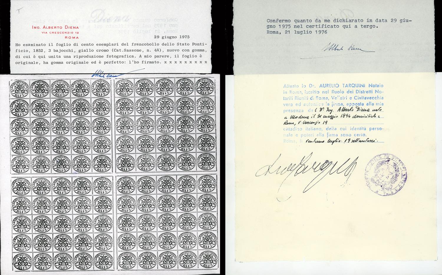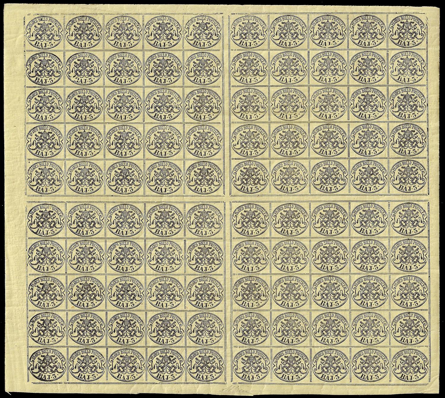 Lot 347 - 1863 - 3 baj giallo cromo (4A), foglio completo di 100 ...