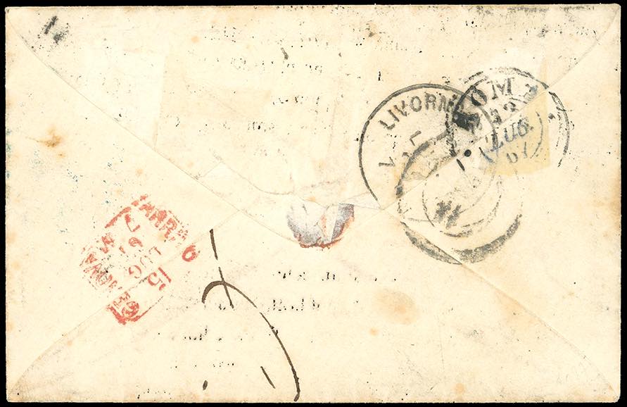 1867 - 20 cent. celeste chiaro, tiratura di Londra (Regno L26), su busta da Genova 11/7/1867 a Roma, dove fu riaffrancata con 4 baj giallo ... Read more