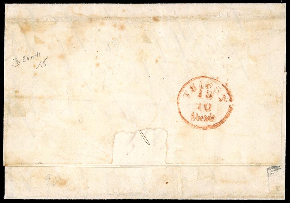 1855 - 8 baj bianco, falso per posta, I tipo (F4), tre esemplari, privi di difetti, su lettera di triplo porto da Bologna 16/10/1855 a ... Read more