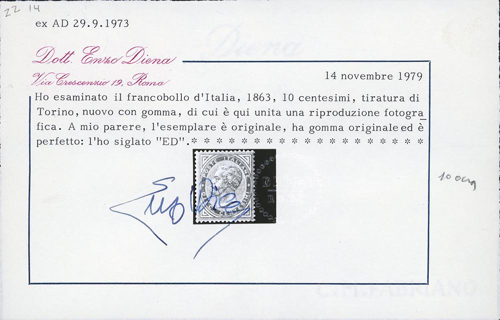 Lot 771 - 1866 - 10 cent. ocra giallo, De La Rue, tiratura di Torino ...