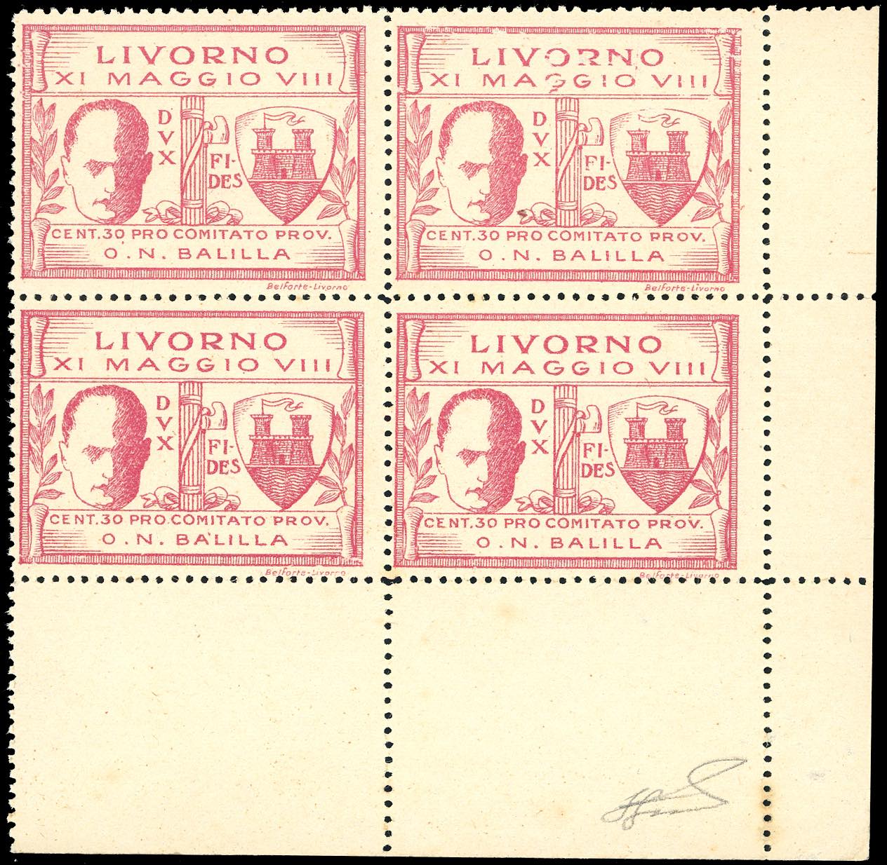 Lot 1630 - LIVORNO 1930 - 30 cent. Mussolini rosa (1), blocco di ...
