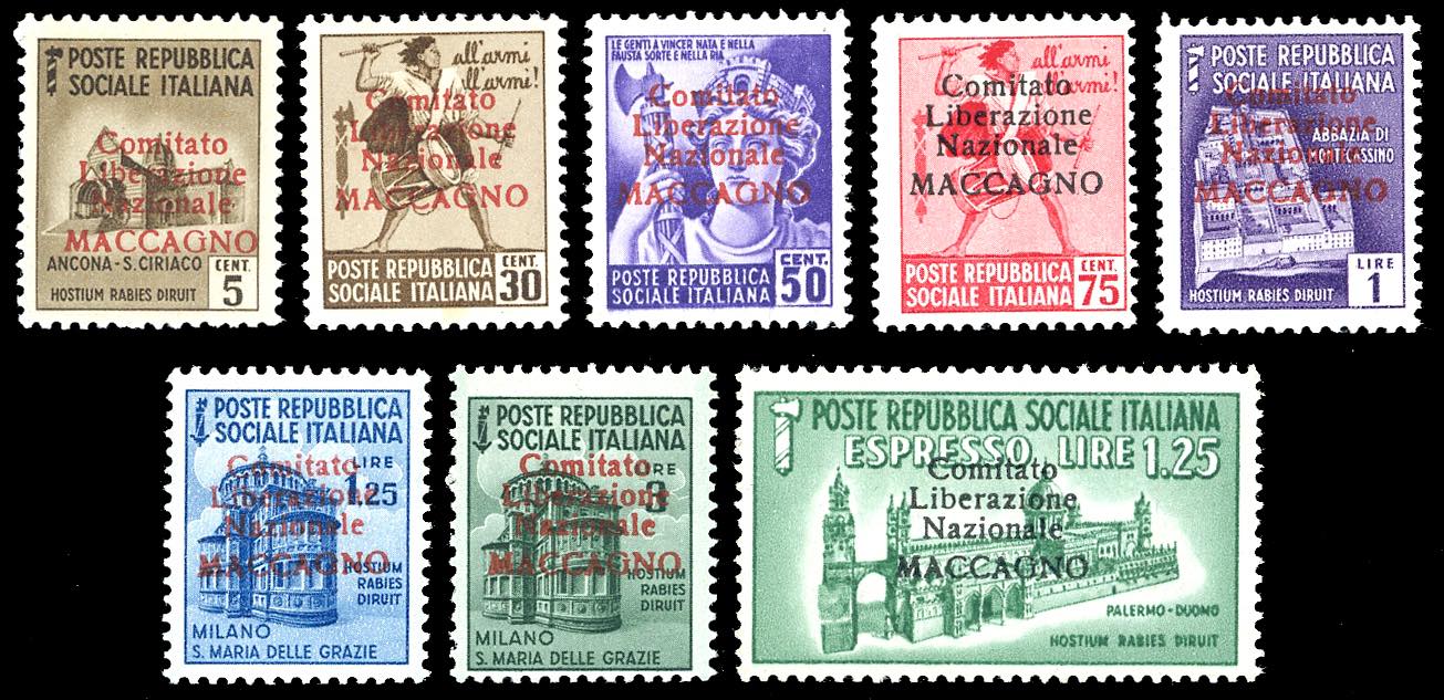 MACCAGNO 1945 - Monumenti Distrutti soprastampati, serie completa (1/8), nuovi, gomma originale integra, perfetti. Ottima qualità. Rari, ... Read more