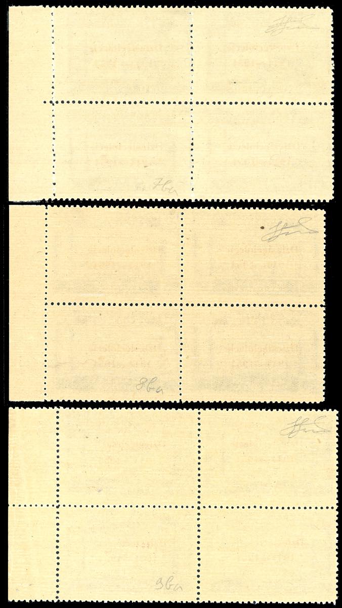 GOV. POLACCO DI LONDRA 1954 - Serie completa, soprastampa vermiglio, blocchi di quattro, bordo di foglio, con un esemplare con varietà tratto tipografico sopra il 5 di 1954 (7/9,7ba/9ba), nuovi, gomma originale integra, perfetti. Belli e molto rari. Cert. Ferrario.