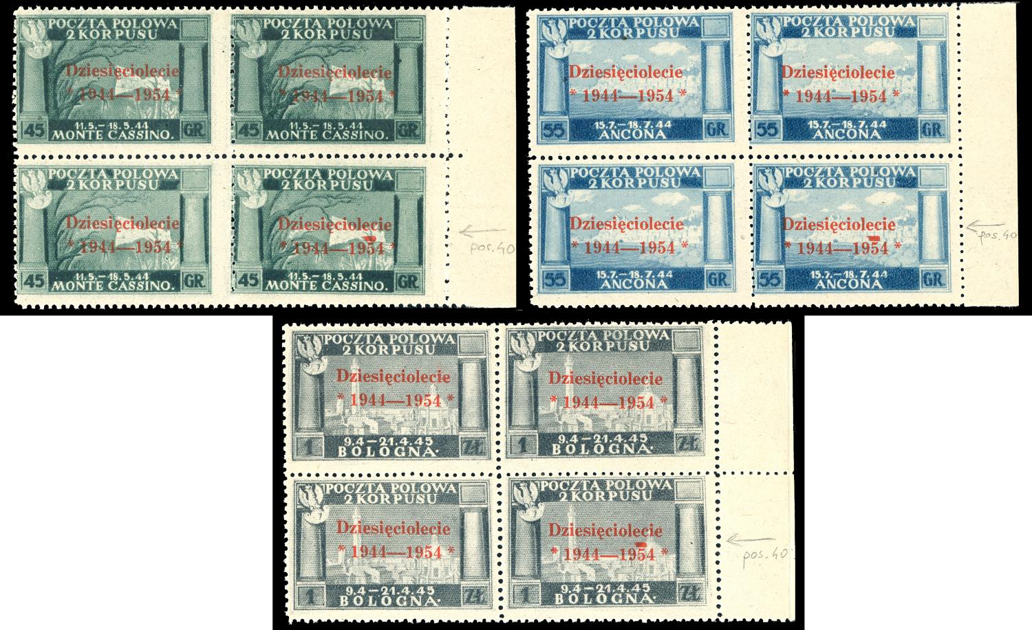 GOV. POLACCO DI LONDRA 1954 - Serie completa, soprastampa vermiglio, blocchi di quattro, bordo di foglio, con un esemplare con varietà ... Read more