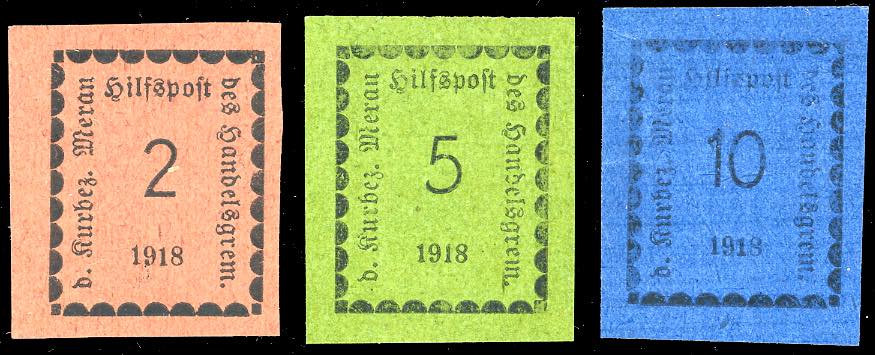 MERANO 1818 - I emissione, serie completa (1/3), gomma originale, perfetti. Bellissimi! Cert. Ferrario.