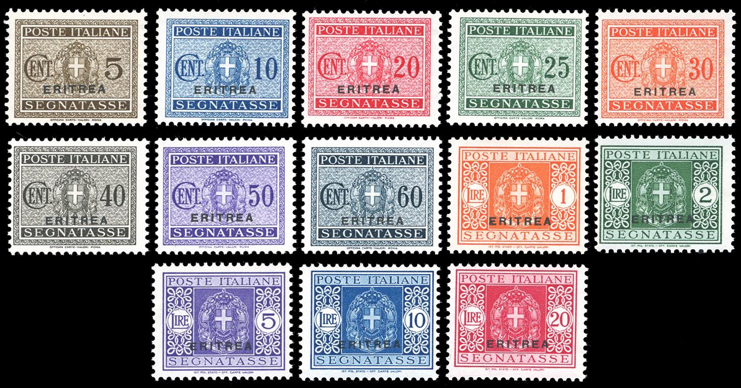 SEGNATASSE 1934 - Soprastampati, serie completa (26/38), gomma originale integra, perfetti. Ferrario.
