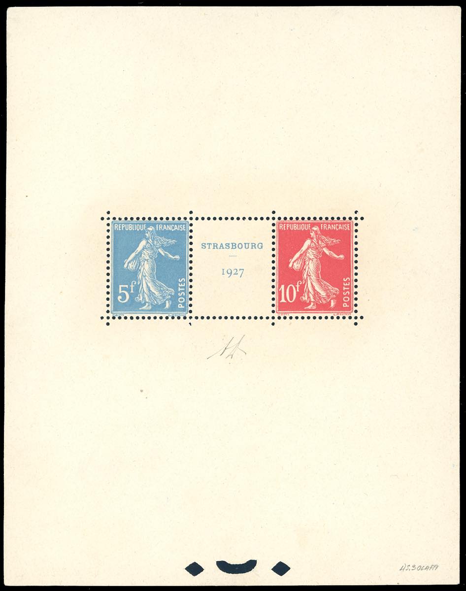 FRANCIA FOGLIETTI 1927 - Esposzione Filatelica Strasburgo, foglietto (BF2), nuovo, gomma originale integra, perfetto. A.Diena.