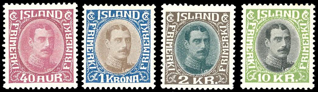 ISLANDA 1931/34 - Cristiano X, quattro alti valori della serie (Unif.150/153), nuovi, gomma originale integra, perfetti e molto freschi.