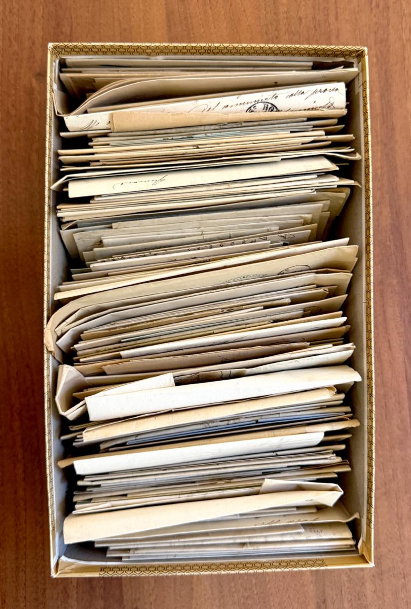 PREFILATELIA 1800/1870 - Abbondante insieme di diverse decine di lettere prefilateliche e non affrancate del periodo in una scatola. Da studiare, divertente.
