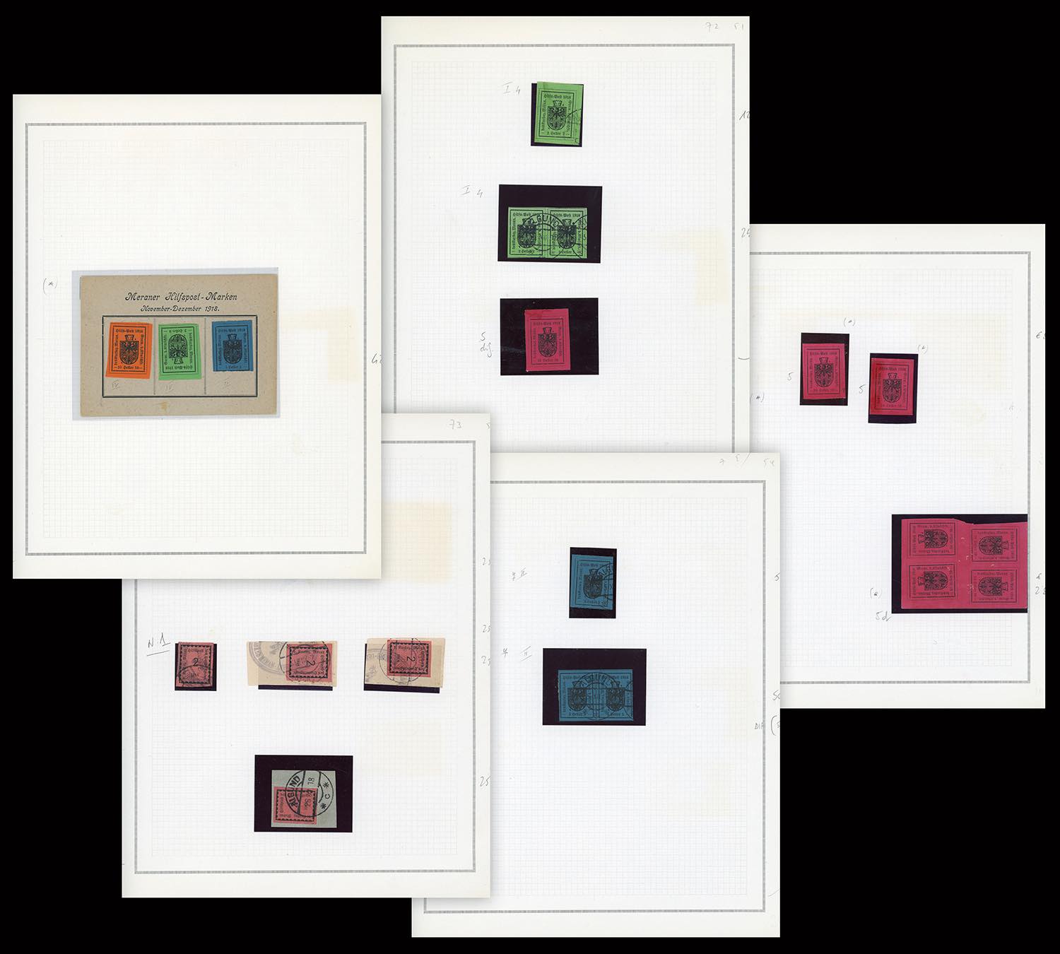 MERANO 1918 - Interessante insieme di francobolli, nuovi ed usati, del periodo, montati su pagine d'album, con qualche interessante e pregevole presenza.