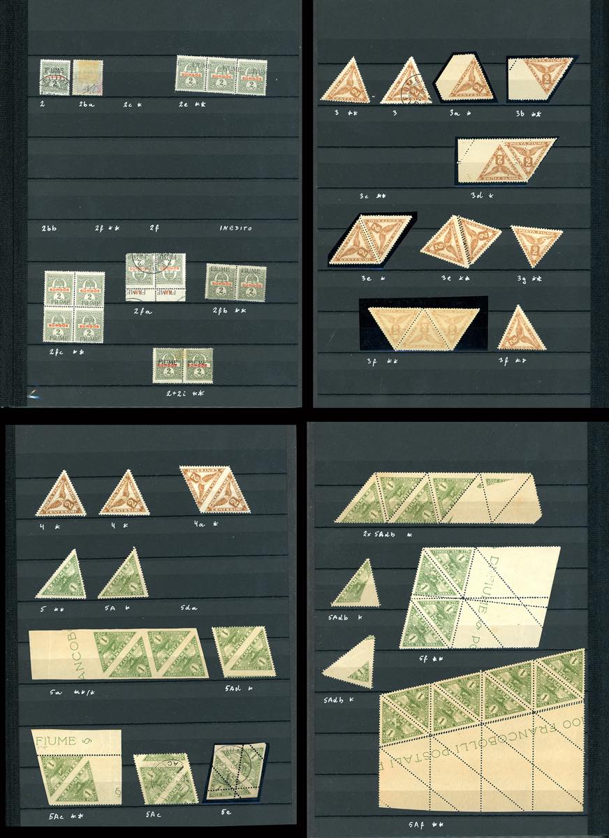 TERRE REDENTE FIUME GIORNALI 1918/1920 - Collezione di francobolli nuovi e usati del periodo in pagine d'album con le relative classifiche. Presenti molte varietà di pregio e non comuni. Qualità generalmente ottima. Buon valore di catalogo.