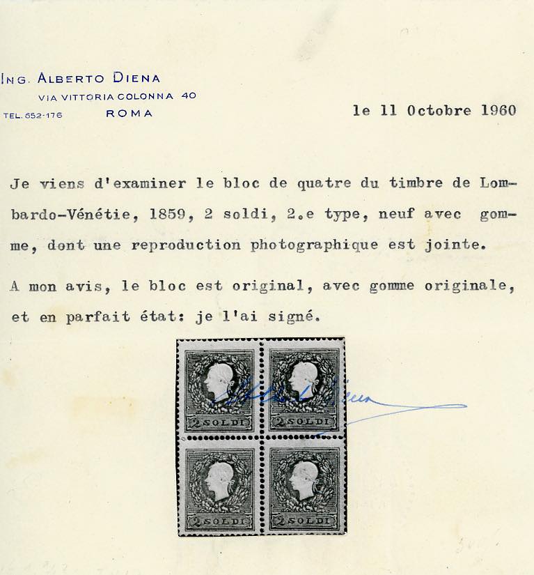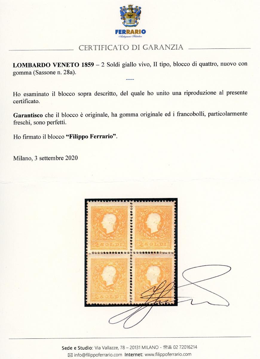 Lot 36 - 1859 - 2 soldi giallo vivo, II tipo (28a), blocco di ...