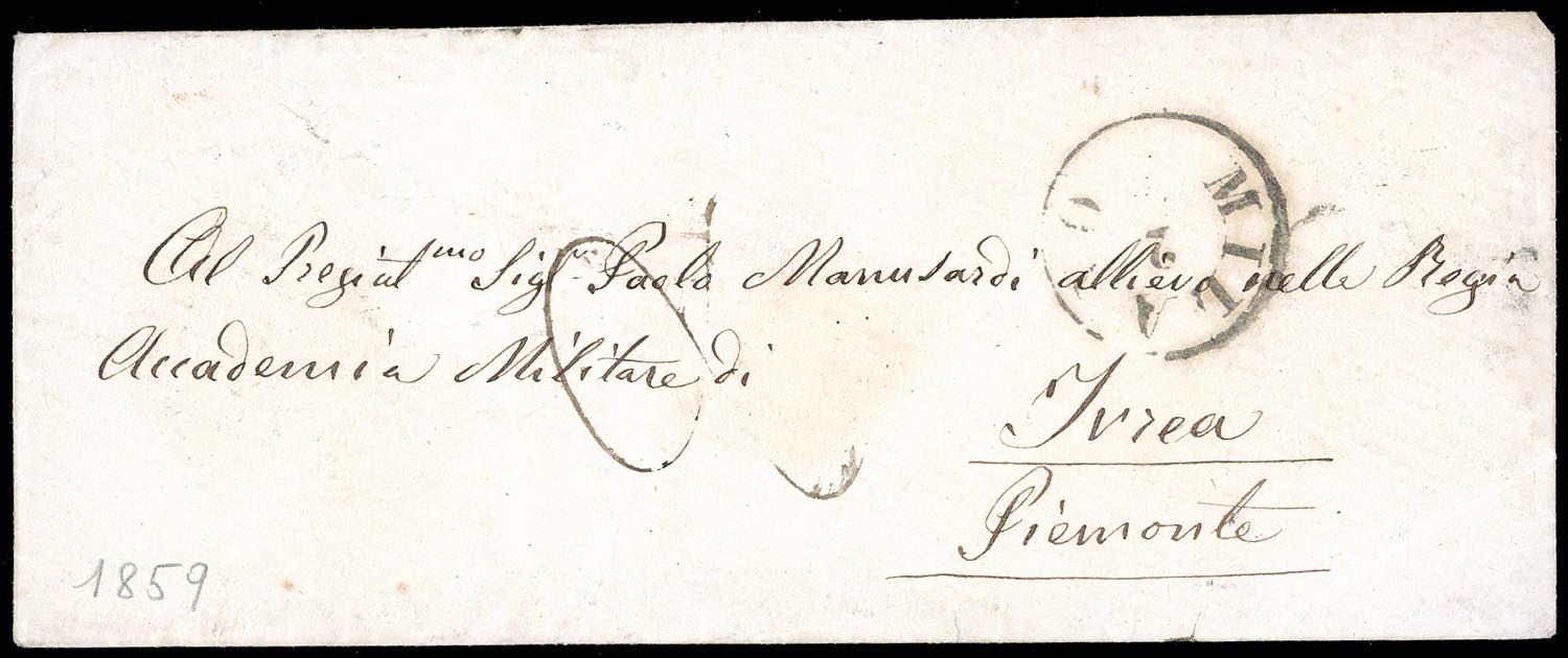 Lot 72 - 1859 - Piccola busta non affrancata da Milano 2/7/1859 ad ...