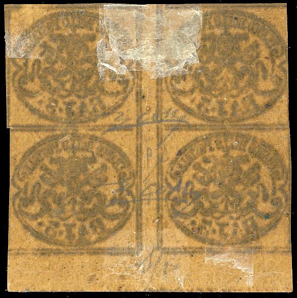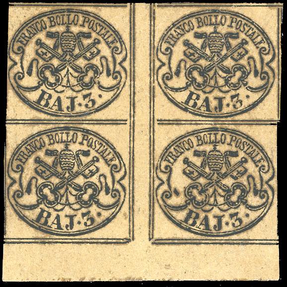 Lot 304 - 1852 - 3 baj camoscio (4c), blocco di quattro, bordo di ...