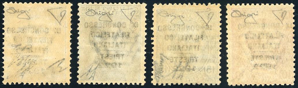 1922 - Congresso Filatelico, terza riga della soprastampa spostata a destra, serie completa (123d/126d), nuovi, gomma originale integra, ... Read more
