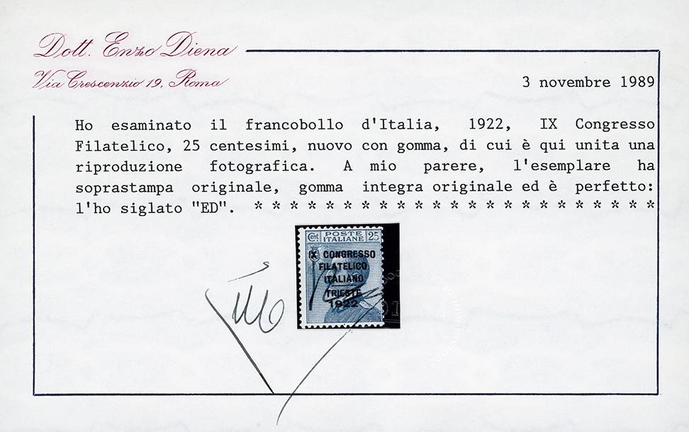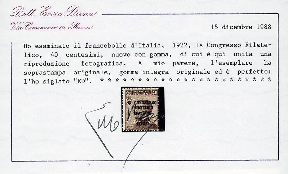 Lot 877 - 1922 - Congresso Filatelico, terza riga della soprastampa ...