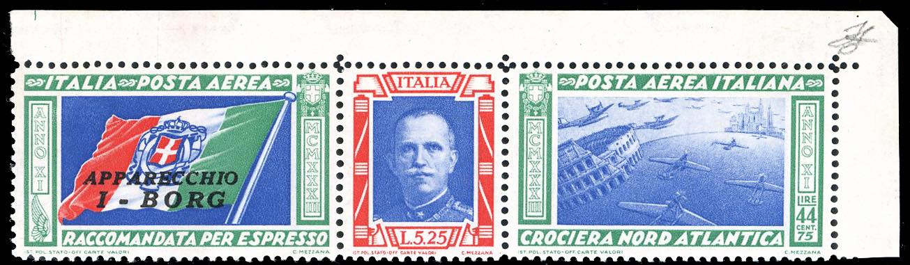 Lot 1033 - 1933 - 5,25 + 44,75 lire Trittico I-BORG (52D), angolo di ...