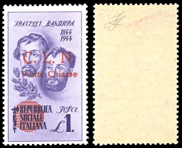 Lot 1765 - PONTE CHIASSO 1945 - 1 lira Bandiera, decalco della ...