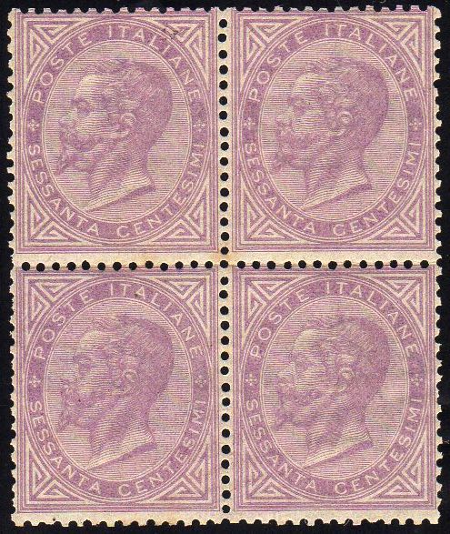 1863 - 60 cent. De La Rue, tiratura di Londra (L21), blocco di quattro perfetto, discreta/buona centratura, gomma originale integra. Bello ... Read more