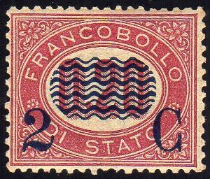 1878 - 2 cent. su 0,20 lire Servizio soprastampati (31), buona/ottima centratura, gomma originale, perfetto. E.Diena. Sorani.