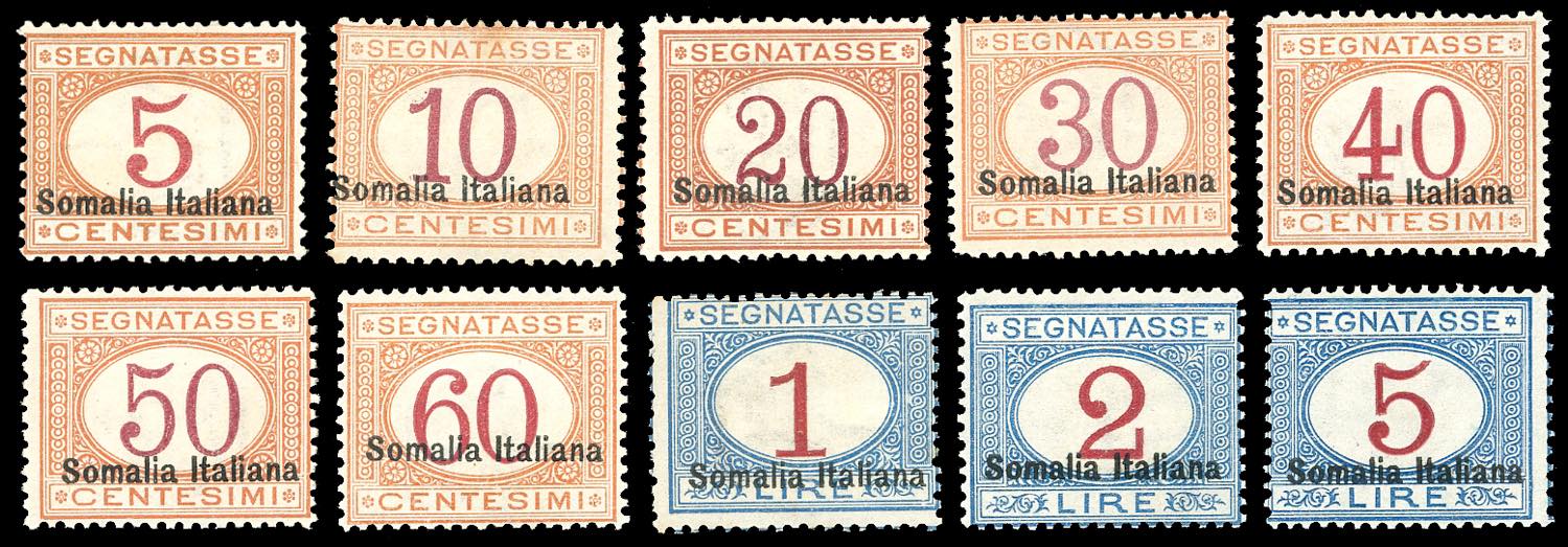SEGNATASSE 1920 - Soprastampati in basso, serie completa (23/32), nuovi, gomma originale, leggera traccia di linguella, perfetti.