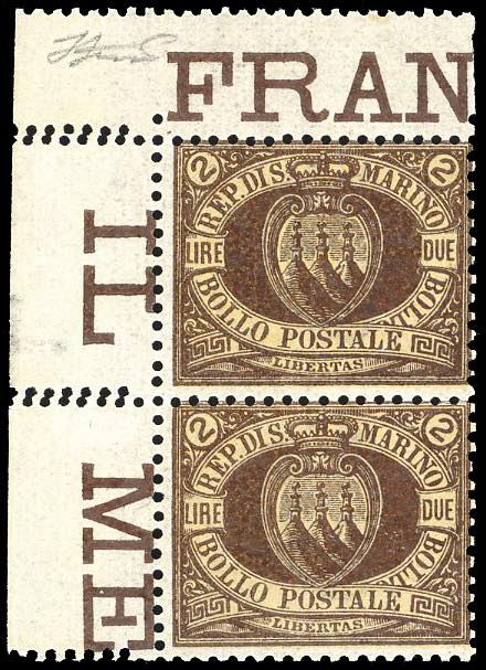 Lot 2585 - 1894 - 2 lire Stemma (21), coppia verticale, angolo di ...