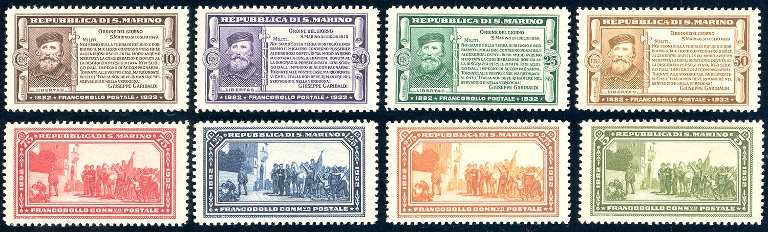 1932 - Garibaldi (168/175), gomma originale integra, perfetti. Ottima qualità. Cert. E.Diena per l'alto valore.
