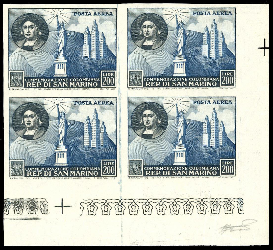 Lot 2642 - 1952 - 200 lire Colombo, non dentellato (101c), blocco di ...