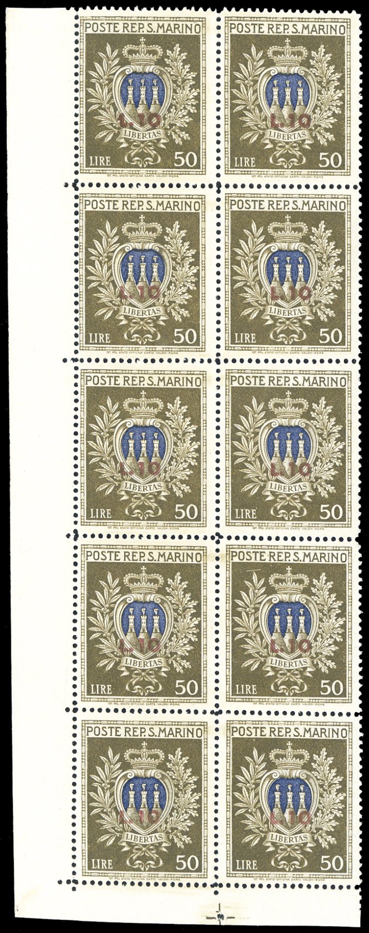 Lot 2665 - 1946 - 10 lire su 50 lire Pro Opere Assistenza, minifoglio ...