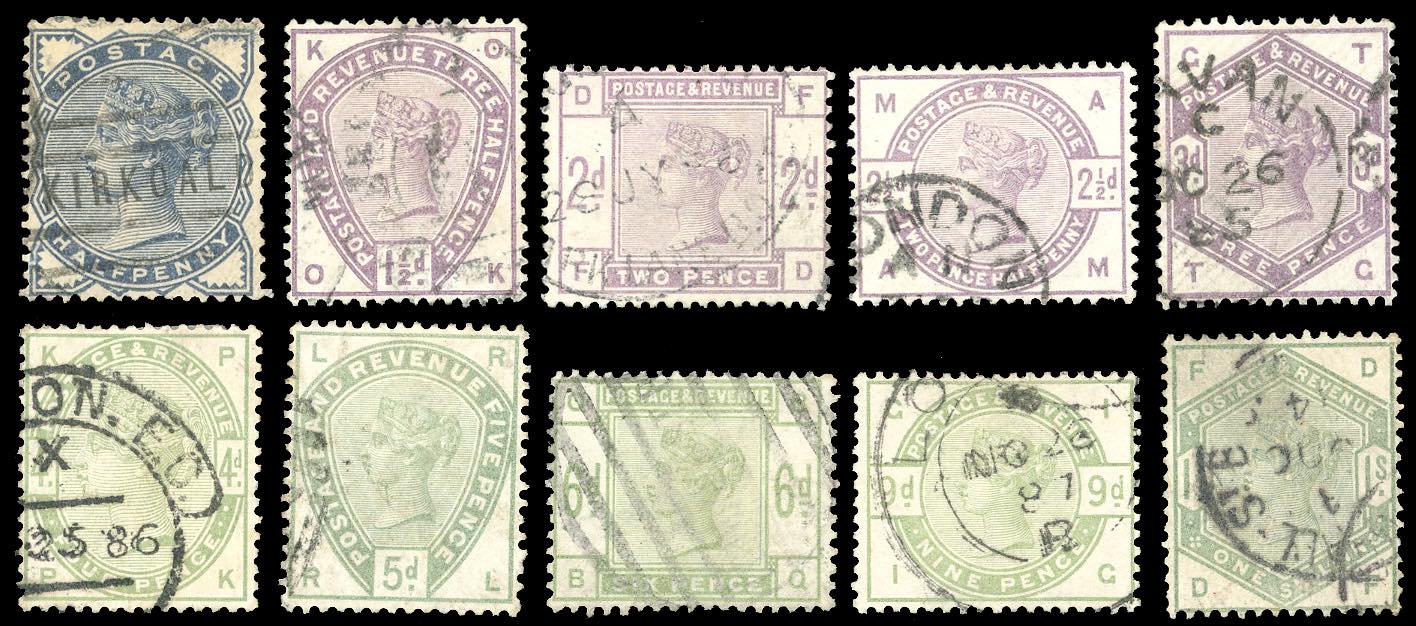 GRAN BRETAGNA 1883/84 - Regina Vittoria, vari riquadri, serie completa (Unif.76/85), usati, perfetti.