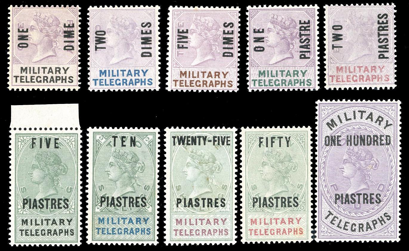 GRAN BRETAGNA TELEGRAFI MILITARI 1886/87 - Soprastampati con valore in piastre, serie completa (Unif.21/30,S.G.MT17/26), nuovi, gomma originale integra (MNH), perfetti. Splendidi.