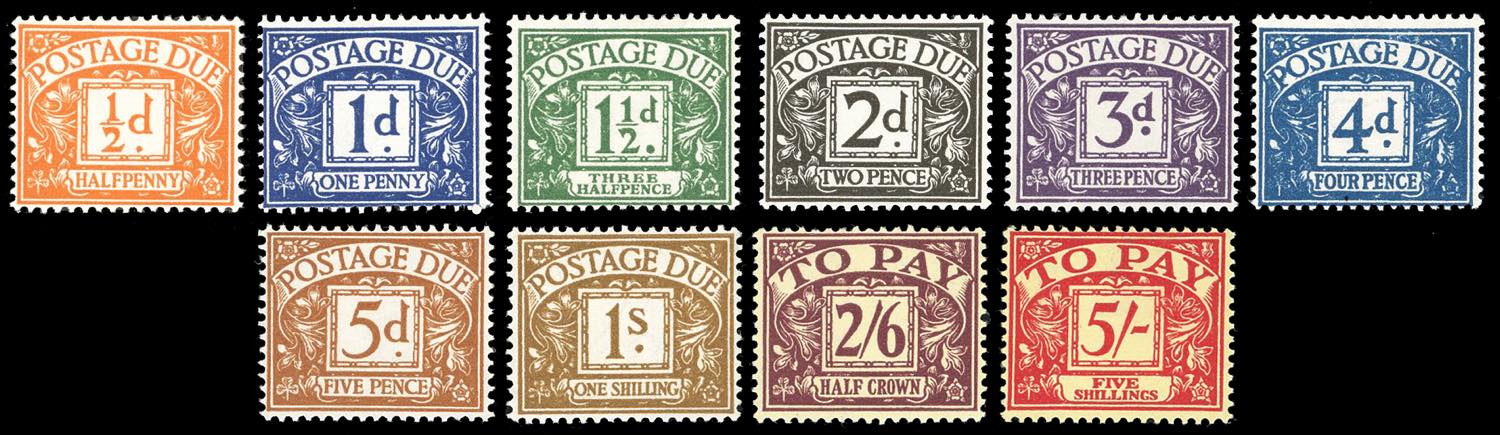 GRAN BRETAGNA SEGNATASSE 1955/57 - Nuovi valori, filigrana Edward coricata, serie completa (Unif.43/52), nuovi, gomma originale integra, perfetti. Belli.