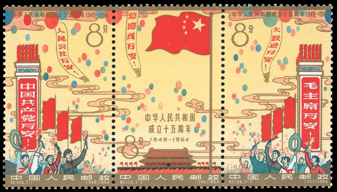 Lot 2895 - 1964 - Triptych, 15th Anniversary PRC (Mi.824/826), full ...
