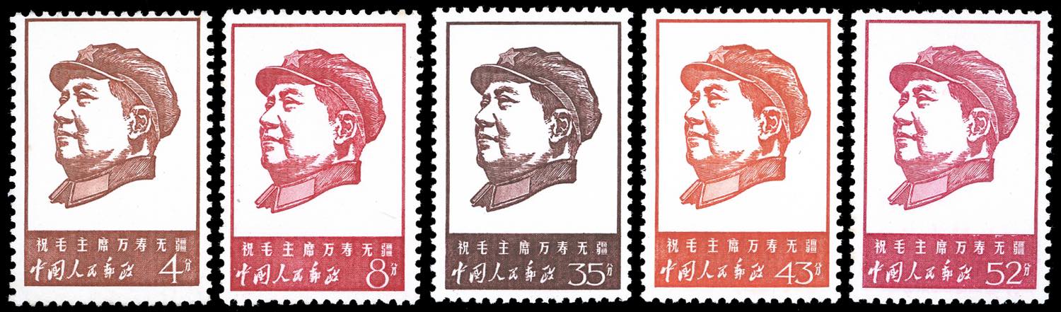 1967 - Long Life to Chairman Mao, complete set (Mi.985/989), full original gum, MNH, perfect conditions, wonderful quality.