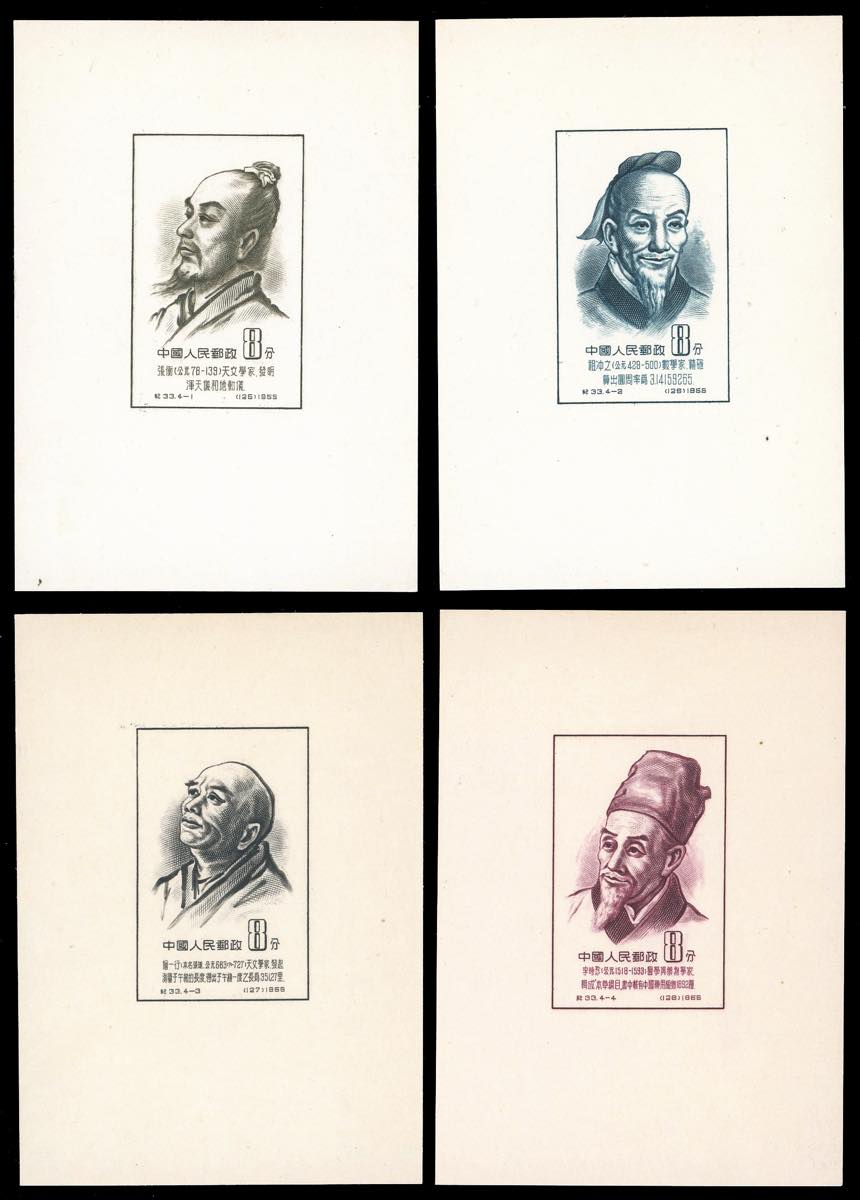 1955 - Scholars of Ancient China, souvenir sheets, complete set of four (Mi.B1/B4), no gum as issued, perfect quality, NH.