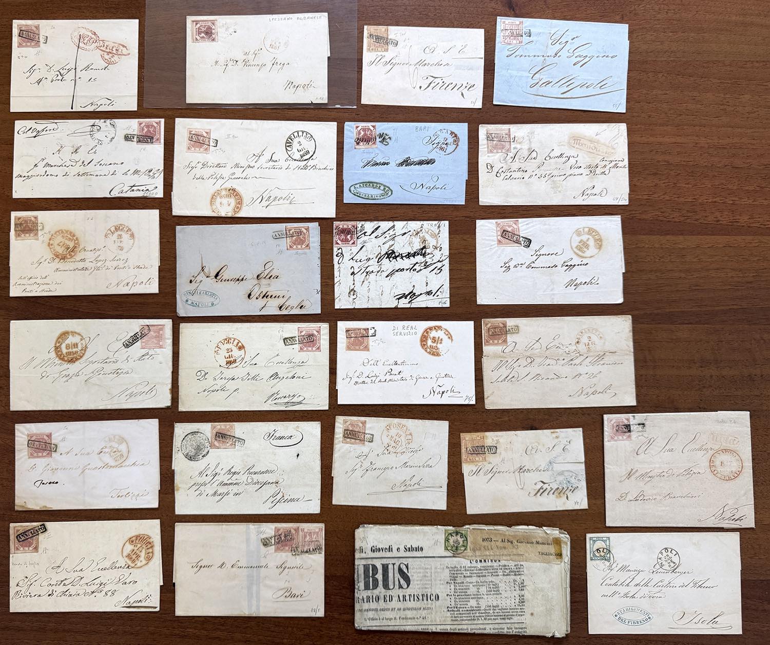 NAPOLI/PROVINCE NAPOLETANE 1858/1862 - Venticinque buste affrancate del periodo, con ottima varietà di annulli. Notato lo svolazzo di ... Read more