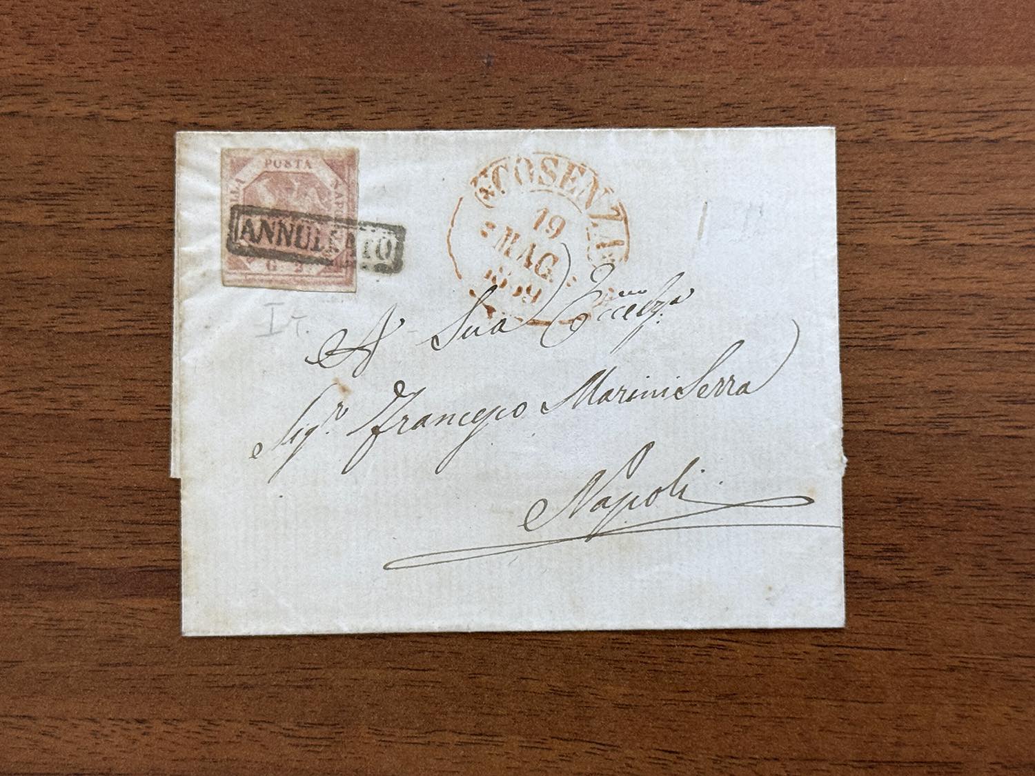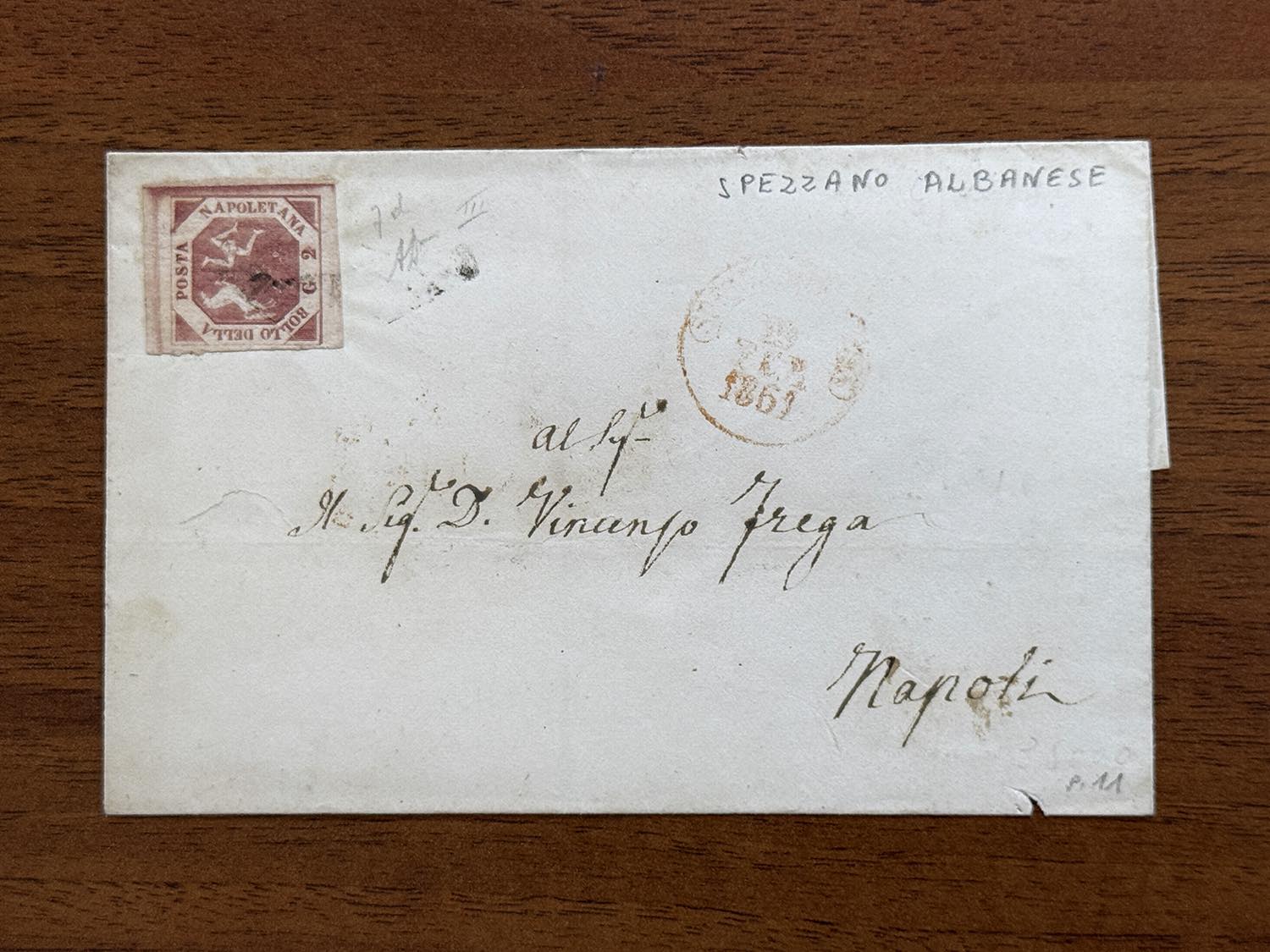 NAPOLI/PROVINCE NAPOLETANE 1858/1862 - Venticinque buste affrancate del periodo, con ottima varietà di annulli. Notato lo svolazzo di Spezzano Albanese, punti 11. Alto valore di catalogo, ottimo per dettaglio.
