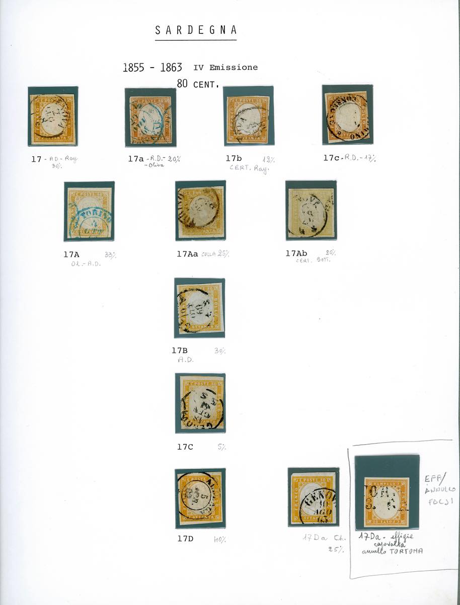 SARDEGNA 1858/1863 - Avanzata collezione di esemplari usati dei francobolli da 80 cent. e da 3 lire della IV emissione di Sardegna, con ... Read more