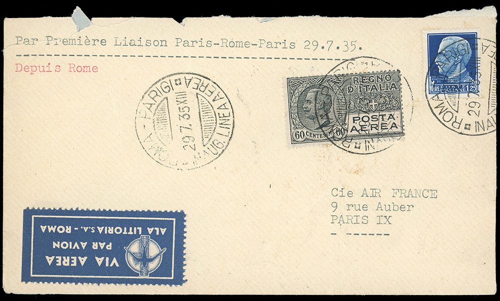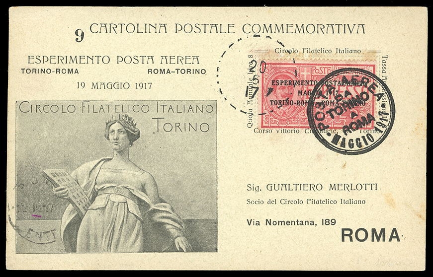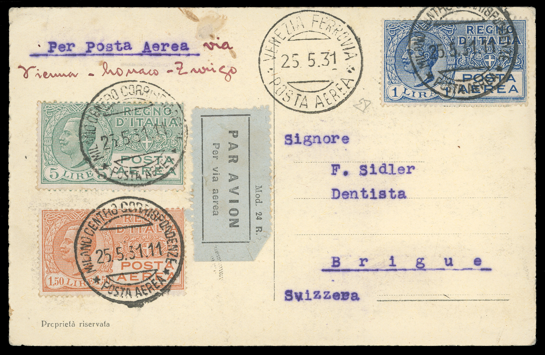 REGNO D'ITALIA POSTA AEREA 1917/1940 - Sette aerogrammi del periodo con primi voli. Notata busta affrancata con 5 lire Roma-Mogadiscio, firmata E.Diena e Ferrario.
