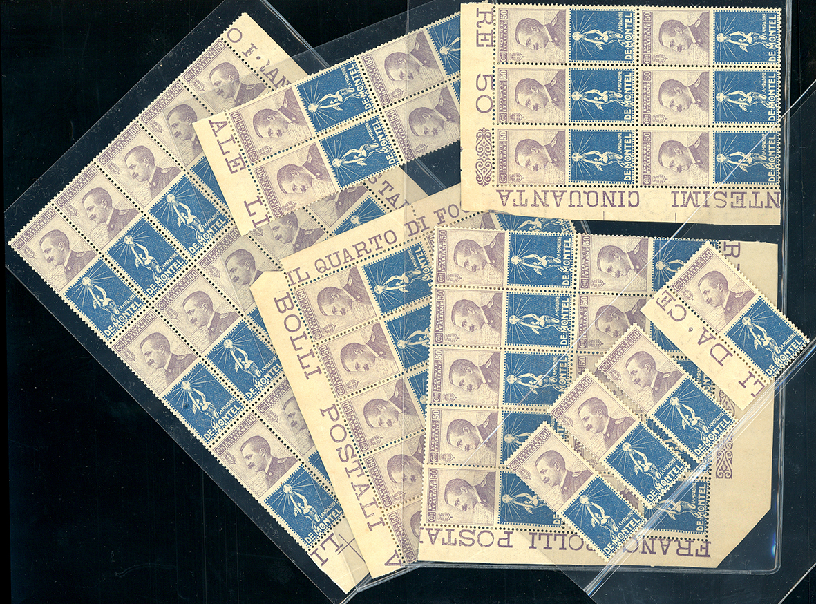 REGNO D'ITALIA PUBBLICITARI 1924 - 50 cent. De Montel (12), 49 esemplari nuovi, per lo più in blocchi, gomma originale integra, ... Read more