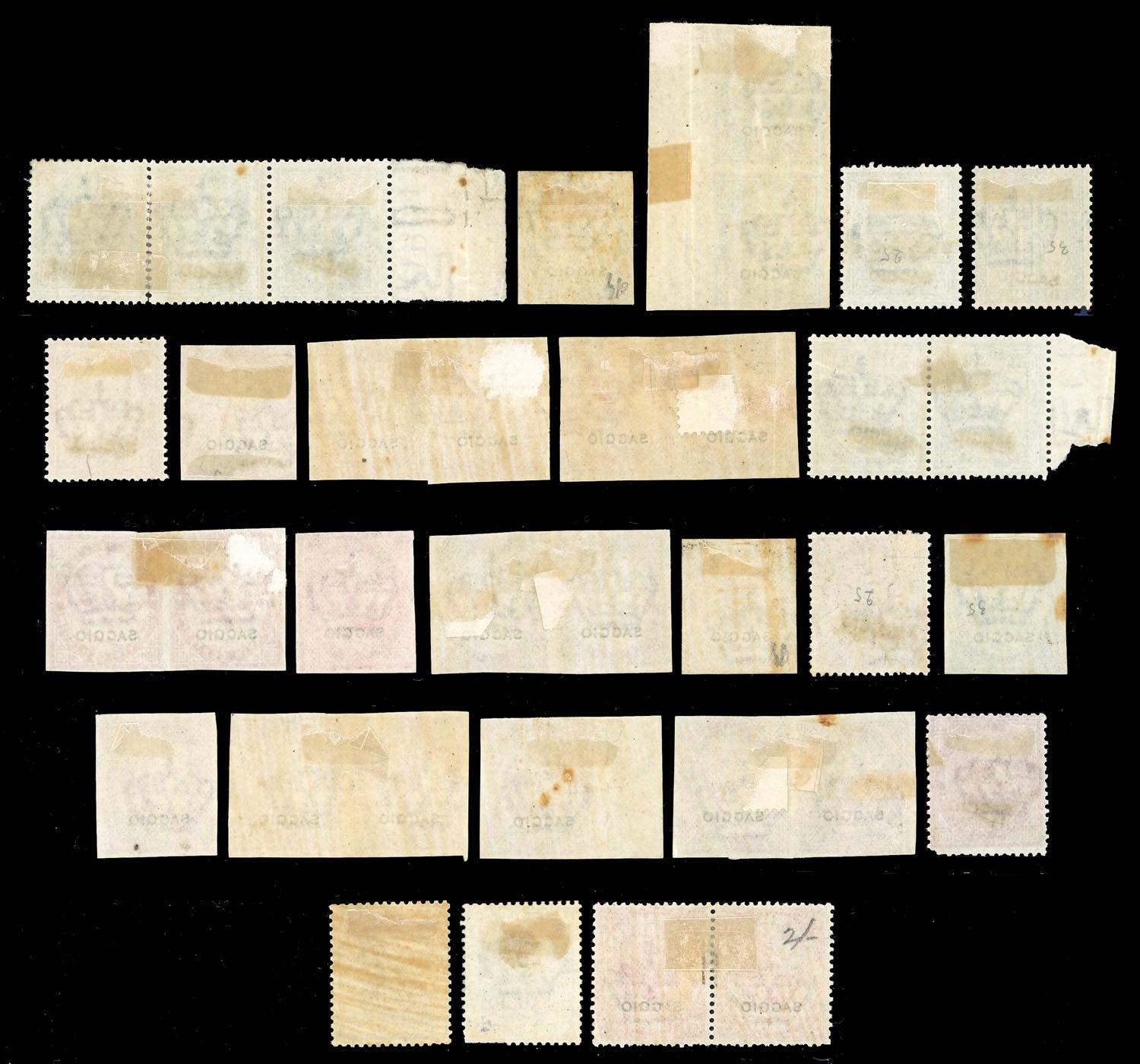 REGNO D'ITALIA SAGGI 1863/1867 - Lotto di 35 esemplari della serie De La Rue, dentellati e non, soprastampati "saggio", linguellati, buona qualità. Insieme non comune.