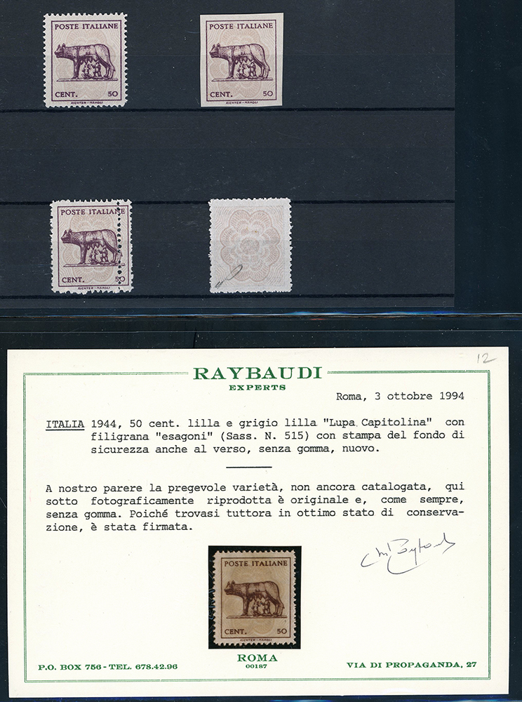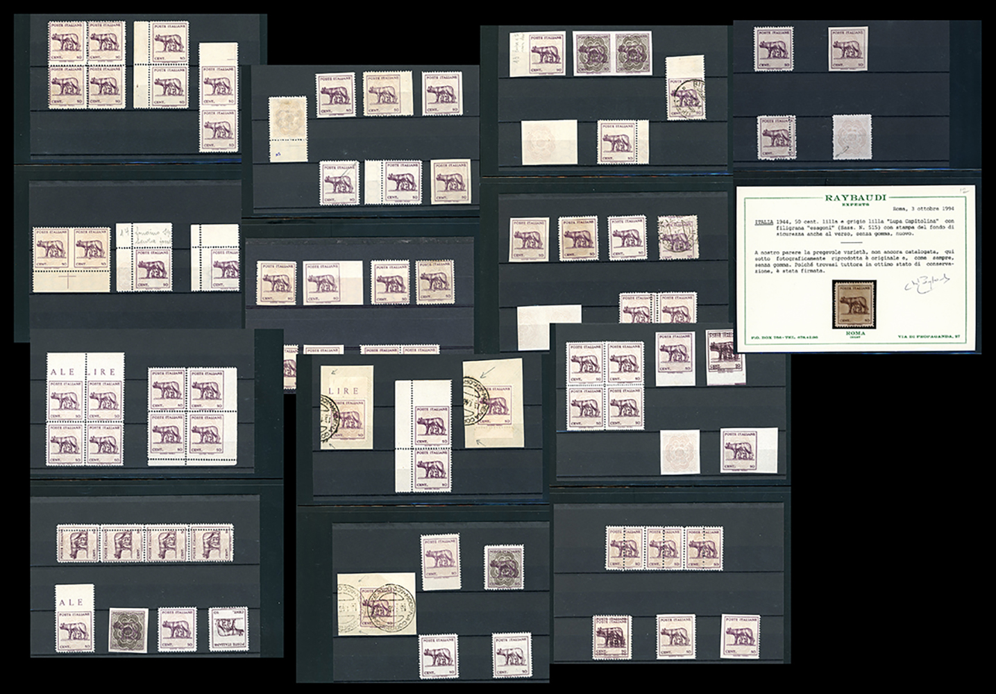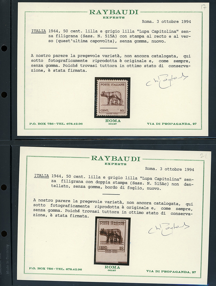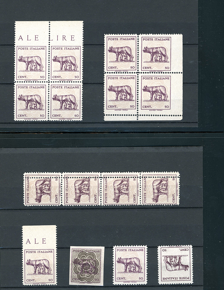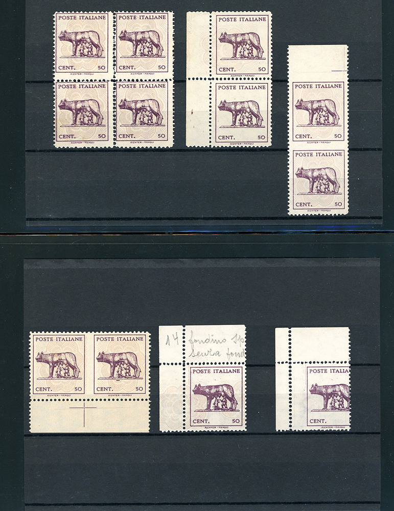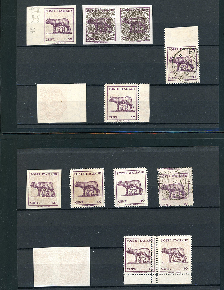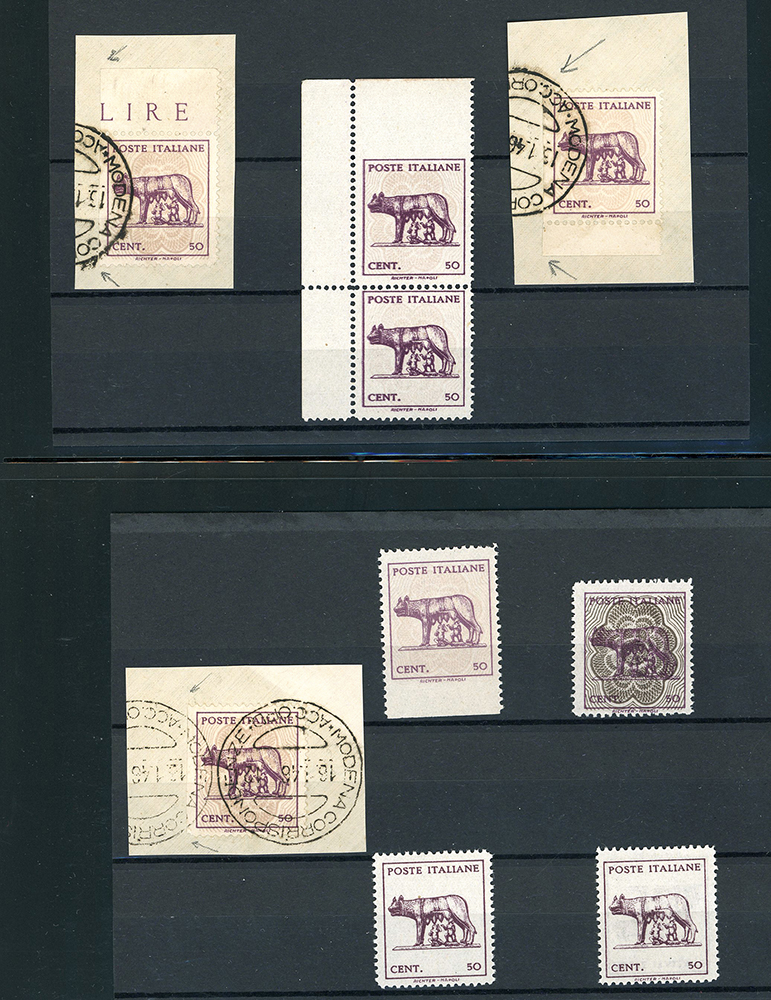 LUOGOTENENZA 1943 - Lupa Capitolina (515,515A), splendida collezione di varietà dell'emissione, in pagine di raccoglitore. Notate numerose presenze di pregio, insieme di difficile reperibilità. Ottima qualità. Ex collezione Lemano.