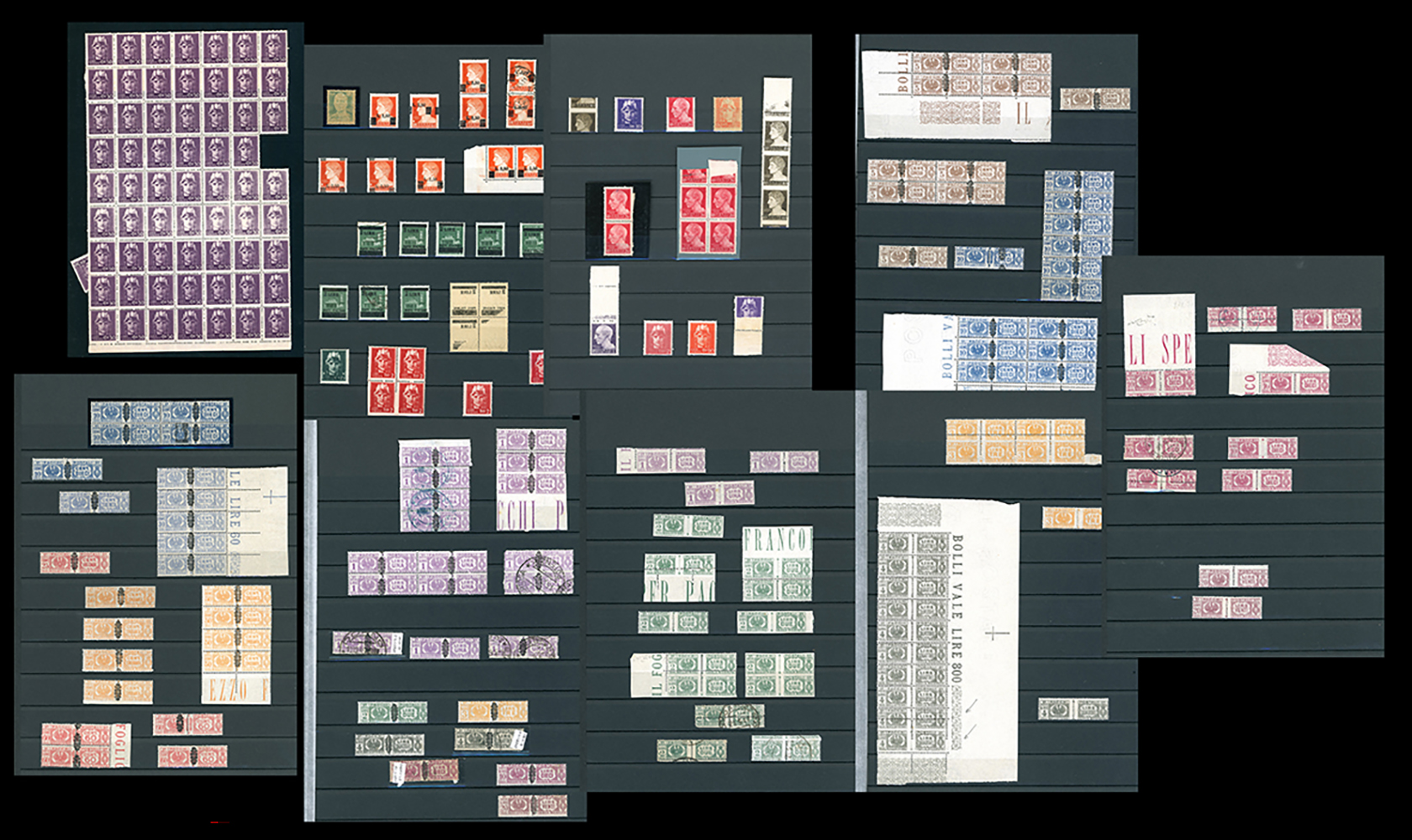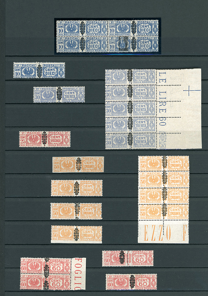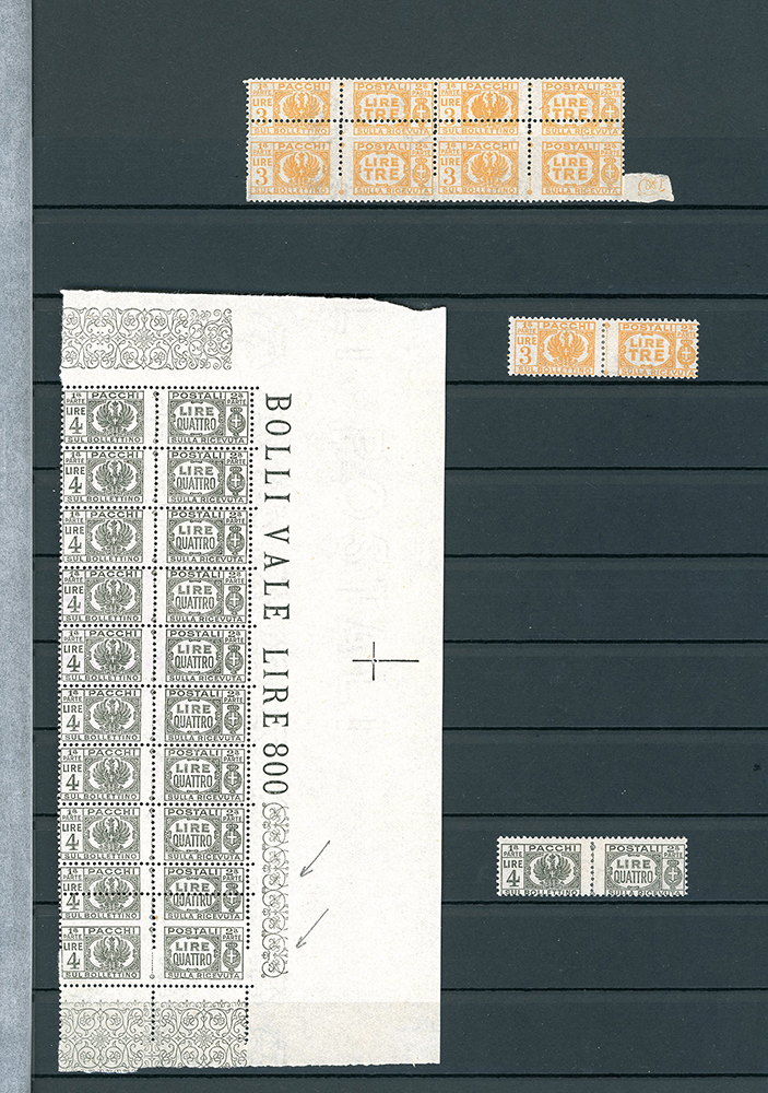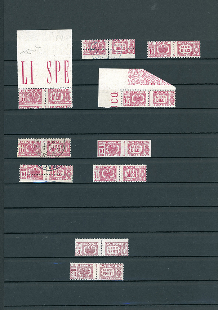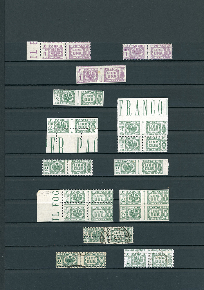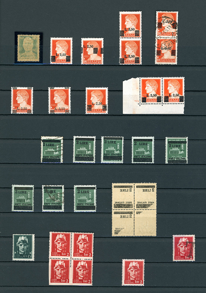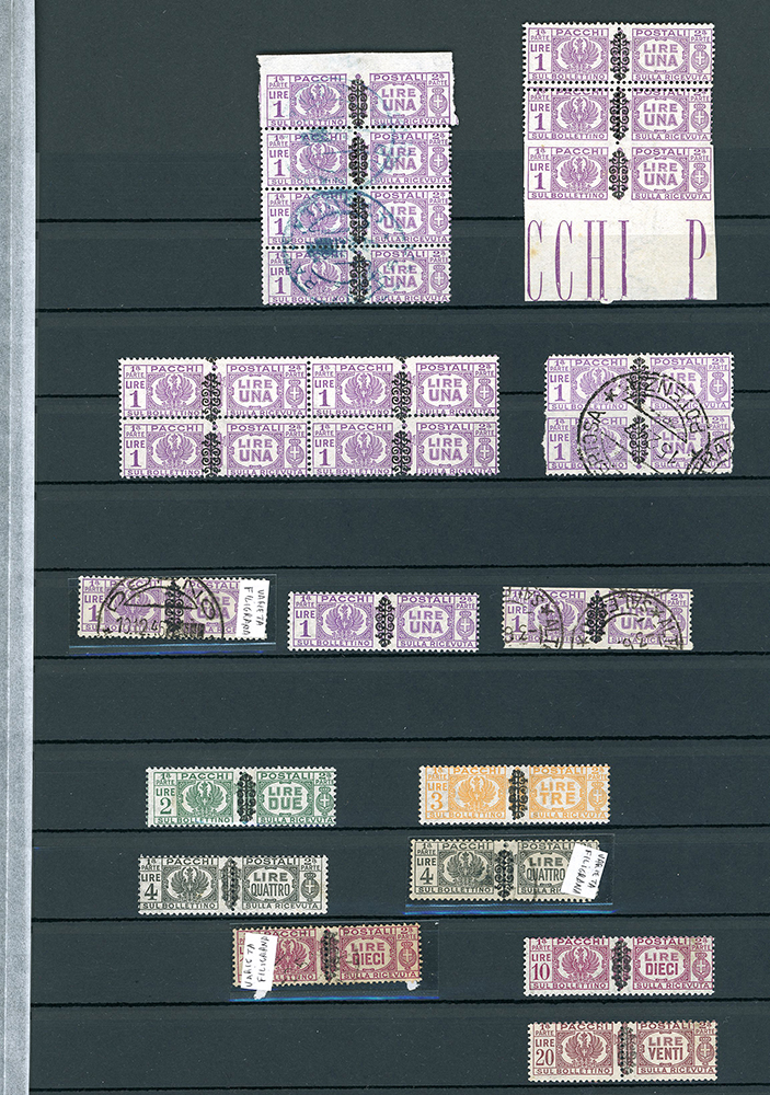 LUOGOTENENZA 1945 - Bellissima collezione di francobolli e pacchi postali del periodo, con molte varietà anche rare e di pregio. Allegati sei certificati. Insieme di difficile reperibilità. Ottima qualità. Ex collezione Lemano.