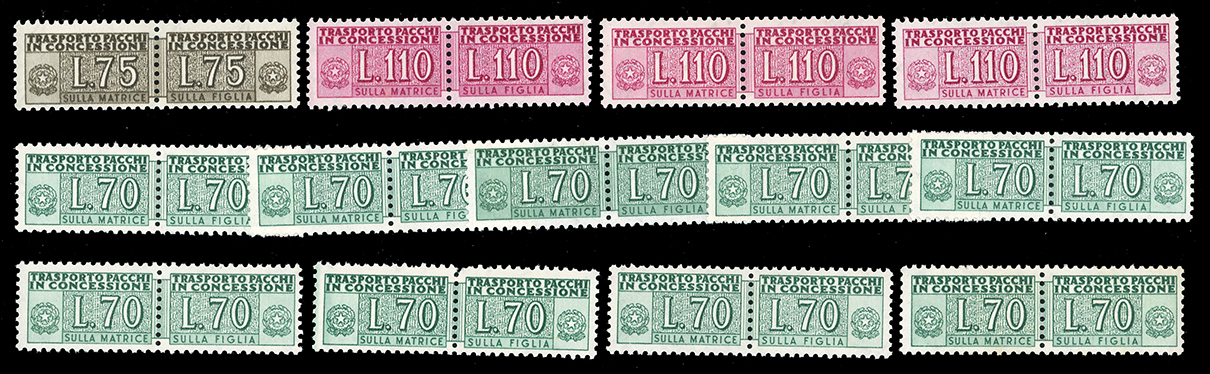 REPUBBLICA ITALIANA PACCHI IN CONCESSIONE 1955/1966 - Piccola accumulazione di esemplari di pregio con filigrana stelle (8,9,12), nuovi, gomma originale integra, un solo esemplare linguellato, generalmente di buona qualità. Buon valore di catalogo.