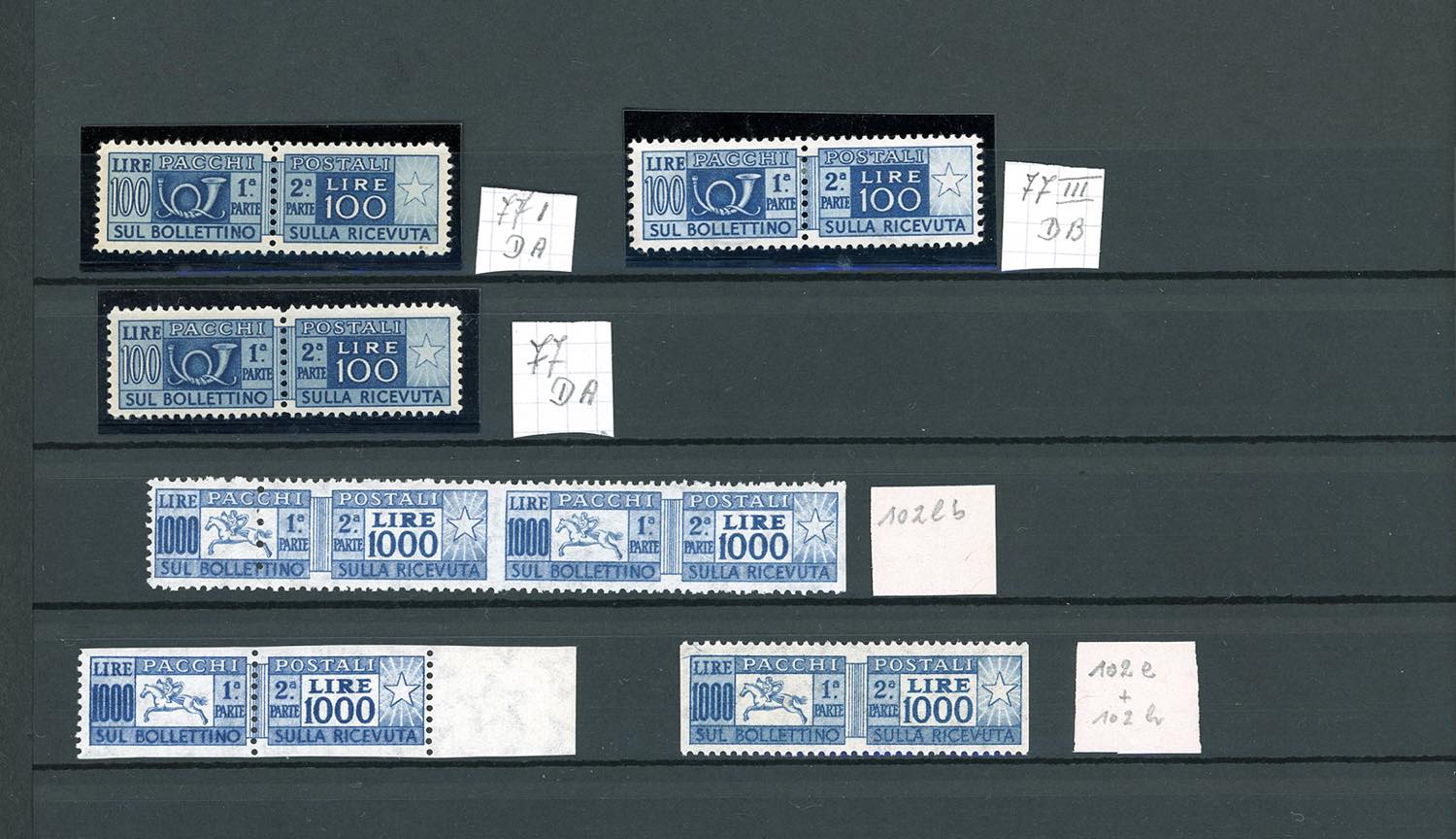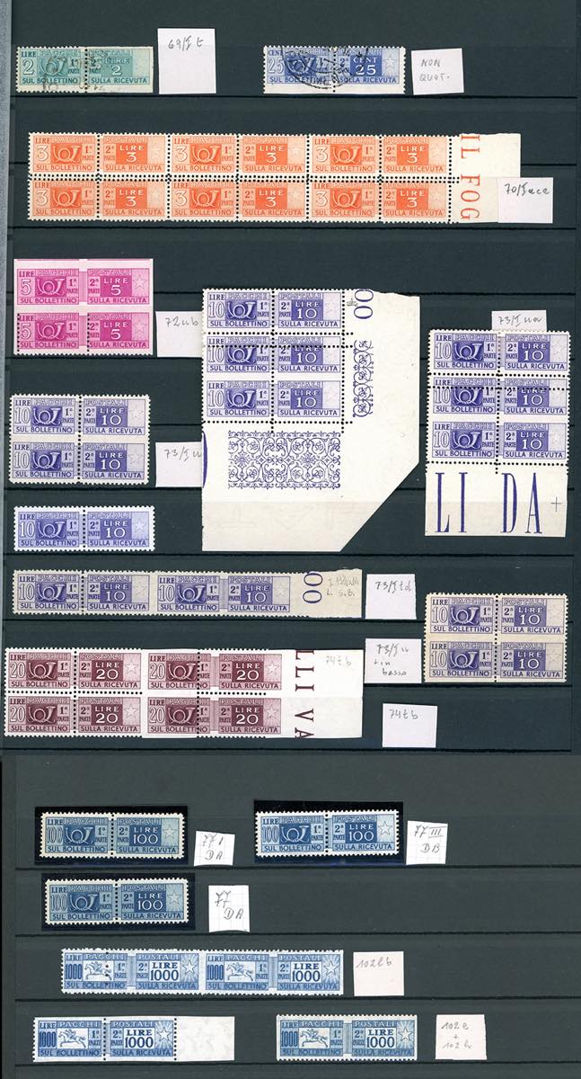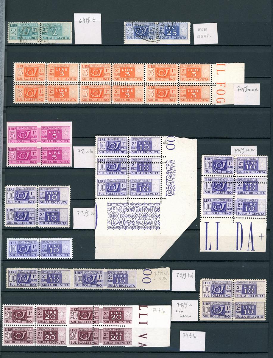 REPUBBLICA ITALIANA PACCHI POSTALI 1946/1979 - Bell'insieme di francobolli con varietà del periodo. Ottima qualità. Ex coll. Lemano.