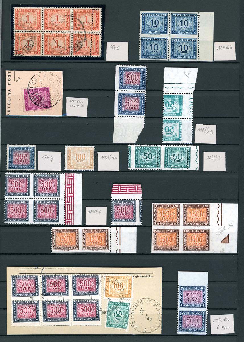 REPUBBLICA ITALIANA SEGNATASSE 1947/2000 - Bell'insieme di francobolli con varietà del periodo. Ottima qualità, insieme raro. Ex collezione Lemano.