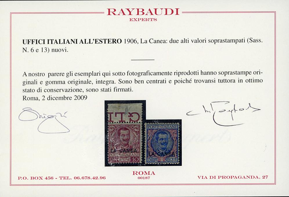 UFFICI POSTALI ALL'ESTERO LA CANEA 1900/1912 - Soprastampati, giro completo di tutte le emissioni (1,2,3/13,14/19,E1), gomma originale integra, perfetti. Cert. Raybaudi per i n. 6 e 13.
