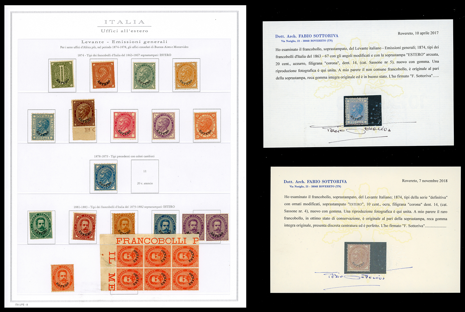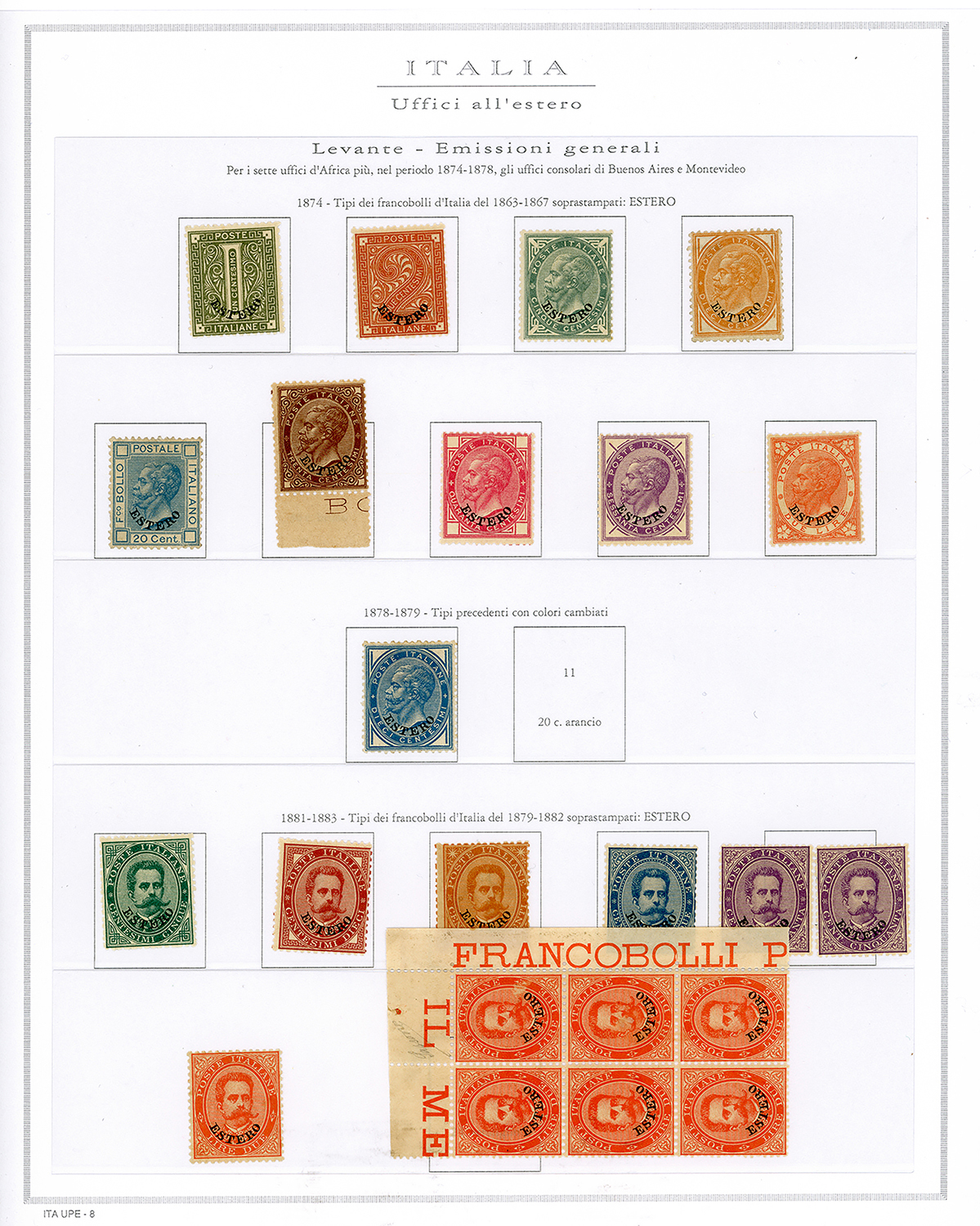 UFFICI POSTALI ALL'ESTERO LEVANTE EMISSIONI GENERALI 1874/1883 - L'emissione dei 17 valori soprastampati "Estero", escluso il n. 11, nuovi, con ripetizioni. Da esaminare. Alto valore di catalogo.